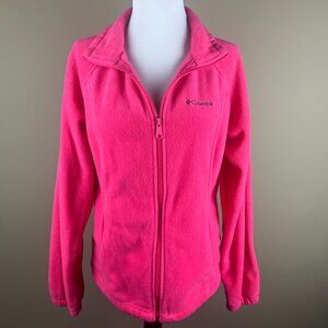 Columbia Long Sleeve Fleece Jacket Size M Pink, Full Front Zip, Collar