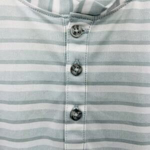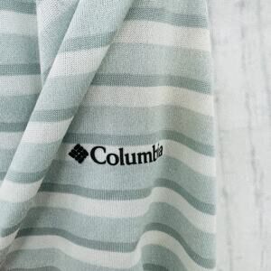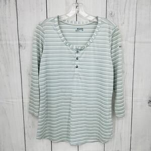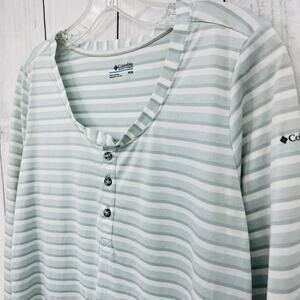 Columbia MEDIUM Henley Tee Shirt womens gray striped sheer 3/4 sleeve