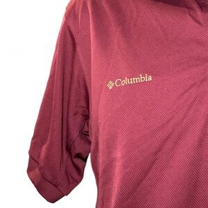 Stylish maroon shirt with embroidered logo. Short sleeves. Comfortable fit.