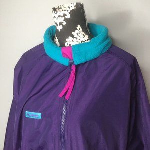 Columbia Medium Nylon Purple Blue Puffy Windbreaker Jacket Fleece Full Zip Cowl Neck