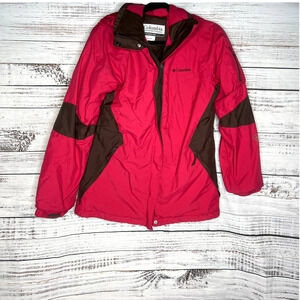 Columbia Women’s Medium Red Brown Winter Jacket Fleece Lined Waterproof Hooded Ski Coat