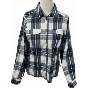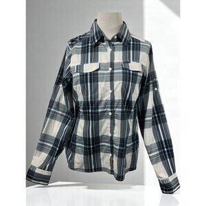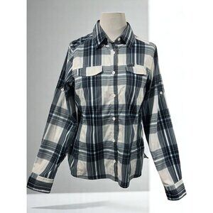 Columbia Medium Plaid Long Sleeve Button Down Shirt Adjustable Sleeve Multicolor