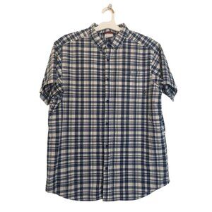 Columbia Mem's Blue White Plaid Button Up Short Sleeve Shirt Large