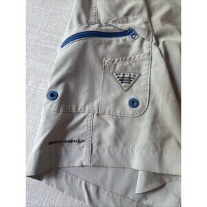 Columbia Men light Gray with Blue zipper detail Terminal Tackle Hybrid Golf Shorts PFG Omni Shield W-40 - small mark on front of thigh