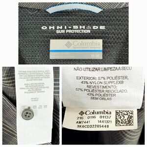 Columbia Men M Omnishade Button Up Shirt Nylon Brown Plaid Vents Roll Tab Sleeve