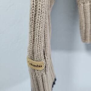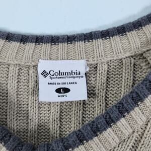 Columbia Men Ribbed V Neck Tan Sweater Gray Trim around Collar & Sleeve Size L