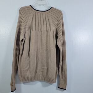 Columbia Men Ribbed V Neck Tan Sweater Gray Trim around Collar & Sleeve Size L 83022-0538