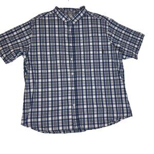 Columbia Mens 2 XL Blue White Plaid Button-Down Short Sleeve Shirt Preppy Resort