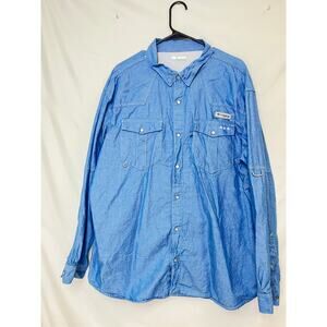 Columbia Mens 2XL Blue Chambray Pearl Snap Western Shirt Long Sleeve Button Down