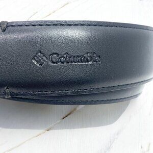 Columbia Mens Black Leather Belt Size 34" Genuine Leather Lining Synthetic Top