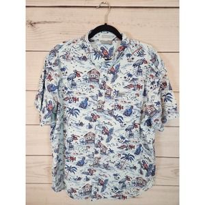 Columbia Men's Blue Allover Printed Regular Fit Short Sleeve Button Up Shirt XL