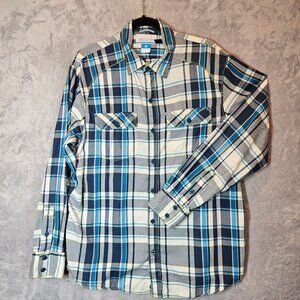 Columbia Mens Blue Plaid Button-Up Shirt L 100% Cotton Casual Long Sleeve Outdoo