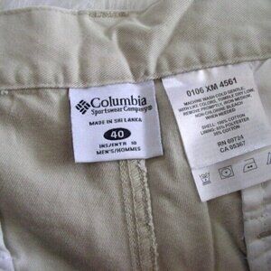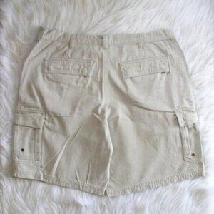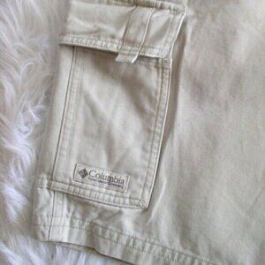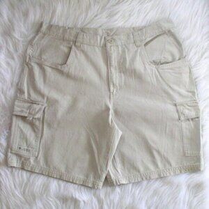 Columbia men's khaki cargo shorts. 100% cotton with two snap close cargo pockets on the leg and two in back. Size 40