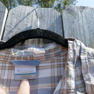 Columbia Men's Cotton Shirt Button Pockets Plaid Short Sleeve XL Tan Gray White