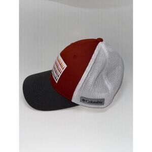 Columbia Mens Fitted Meshback Hat Red Gray Size S/M Flag Trees