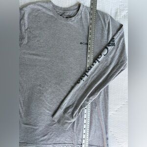 #Columbia #LongSleeve #MensWear #Athleisure #OutdoorStyle #TravelEssentials #CottonBlend #LogoTop #GrayShirt #LayeringPiece