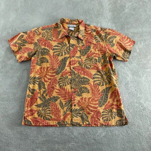 Columbia Mens Hawaiian Short Sleeve Shirt Large Cotton Viscose Leaves Print 4957