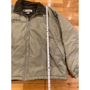 Versatile Columbia jacket designed for varied weather conditions. This jacket features a full zip design with a cozy fleece lining, providing warmth and comfort. The outer shell offers protection against light rain and wind, making it suitable for outdoor activities. Black accents complement the gray body, adding a touch of style. Practical features include secure pockets for essentials and a comfortable collar. Ideal for hiking, camping, or everyday casual wear during the cooler months.