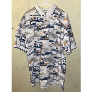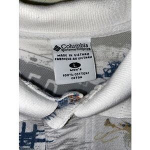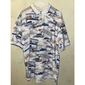 Columbia Men's L Fishing Polo Shirt Red Fish Shrimp 100% Cotton Short Sleeve. Condition is "Pre-owned". Shipped with USPS First Class.pit to pit 22”