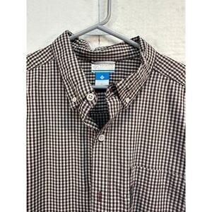 Columbia Mens LS Button Up Brown Checked Plaid 100% Cotton Crisp Business Cas.