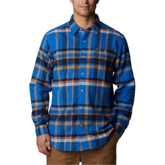 Columbia Mens Large Button Up Pitchstone Heavyweight Flannel Shirt-Bright Indigo