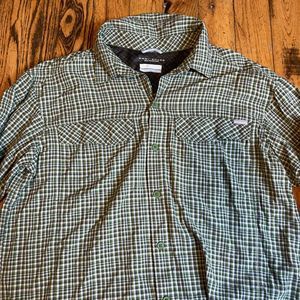 Columbia Men’s Large Green Plaid Button Up Long Sleeve Shirt