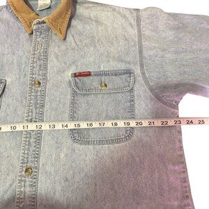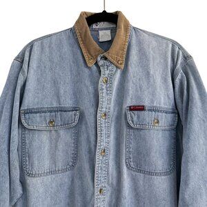Columbia Mens Light Blue Denim Button Up Corduroy Elbow Long Sleeve Shirt
