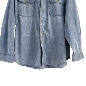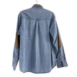 Columbia Mens Light Blue Denim Button Up Corduroy Elbow Long Sleeve Shirt Size M