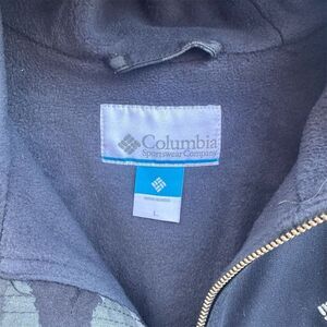 Keywords: Columbia, jacket, windbreaker, men's, fleece, camouflage, hooded, hiking, outdoor, casual, fall, pre-owned, black, zip closure, Loma Vista.