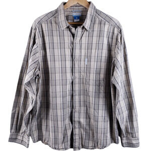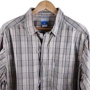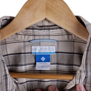 Columbia Men's Long Sleeve Button-Up Shirt Size Large Beige Brown & White Plaid