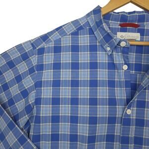Columbia Men's Long Sleeve Button-Up Shirt Size XL Blue & White Plaid
