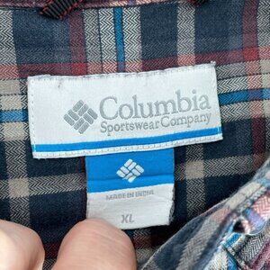 Columbia Mens Long Sleeve Plaid Button-Up Shirt XL Cotton Blue/Red 5127
