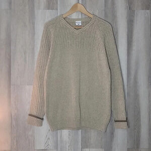 🛍Columbia Mens M Tan Chunky Knit Long‎ Sleeve V Neck Sweater Outdoors Casual