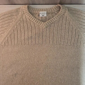 Columbia Mens Tan Chunky Knit Long Sleeve V Neck Sweater Outdoors Casual Size M