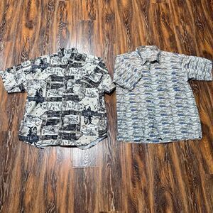 2 Men's M Columbia button up shirts. One shirt has a few wear spots and holes on the back side of the collar / arm area and the other one is in good shape. Similar search Northface Patagonia Magellan Ralph Lauren Hawaiian geometric.