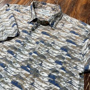 Columbia Men's M Vintage Button Up Short Sleeve Shirts Trout Fish Medium