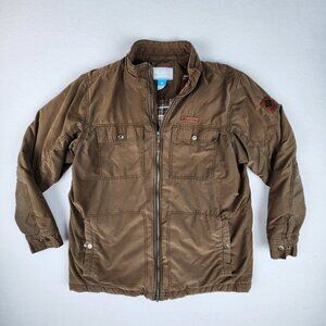 Columbia Mens Mid Weight Flannel and Nylon Lined Coat Size Large Brown