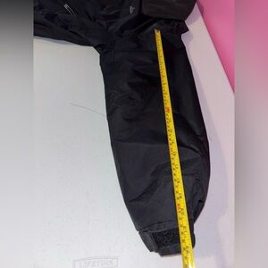 Really nice jacket! Velcro sleeve closures, elastic waistband, and an inside pocket. Fleece lined, polyester shell, and all around great jacket!