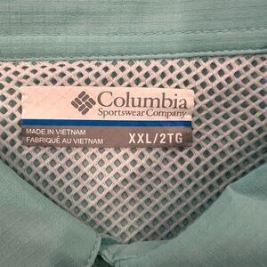 SIZE XXL - RETAIL $55 - This Columbia Men's Mint Green PFG Tamiami II Long-Sleeve Shirt is ideal for all-day fishing trips and hikes, the men's Columbia PFG Tamiami II long-sleeve shirt is great in warm weather and offers antimicrobial tech to help keep it fresh. Omni-Shade™ UPF 40 sun protection, Omni-Wick™ technology actively breathes and pulls moisture away from the skin for fast evaporation,Antimicrobial finish protects this product from bacterial growth, Button-down collar, Mesh-lined back vents let in and out a cooling breeze, Roll-up sleeves with tab holders, Multiple chest pockets hold your trail and travel essentials, Fishing rod holder at the chest frees up your hands. Color is mint green. APPROXIMATE MEASUREMENTS - Chest across is about 27" and the length is about 34".