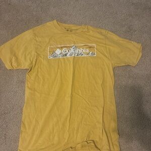 Stylish mustard tee with Columbia logo. Soft fabric. Ideal for everyday wear.
