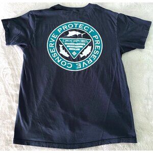 Columbia Mens Navy Graphic T-Shirt Tee Size Large L Cotton Crewneck. Has some wash wear.