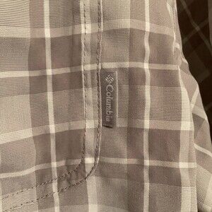 Columbia Men's PFG Outdoor Fishing Camping Hiking Lightweight Short Sleeve Button-up Grey Plaid Mens Size S