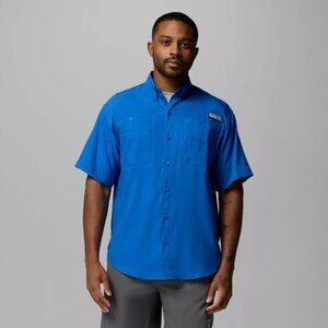 Columbia Men’s PFG Tamiami • Blue Short Sleeve Button Down Fishing Shirt Size XL