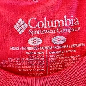 Columbia PFG shirt, red Columbia tee, men’s outdoor fishing shirt, cotton casual shirt, Columbia Sportswear, small men’s shirt, Columbia performance gear, short sleeve shirt