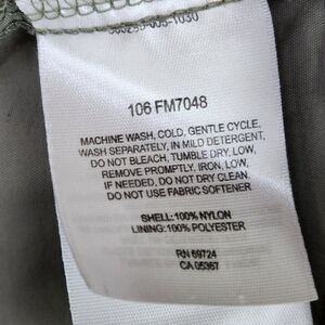 This shirt is in very good condition. Upon putting it in front of my photography lights to take pictures, I could see several small spots on the lower front and on the back. Also on each sleeve. (See photos) Lots of pockets, vented, breathable. Button down collar. Still a great shirt for out on the lake or river.