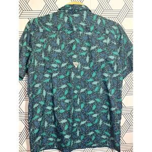 Details: Shirt is in great condition. Not stain, holes, or missing buttons. The shirt is super light weight with a fun fish print.