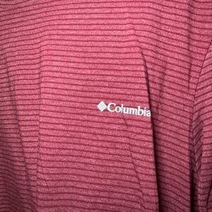 Keywords: Columbia men’s shirt, performance tee, short sleeve top, stretch cotton blend, outdoor activewear, casual t-shirt, burgundy stripe tee, everyday comfort