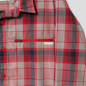 Columbia Men's Plaid Flannel Omni-Shade Zip Pocket Fishing Shirt Red Gray Sz Lrg