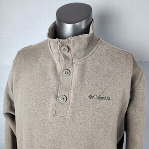 Columbia Men's Quarter Button Mock Neck Brown Knit Pullover Sweater | Men's XL