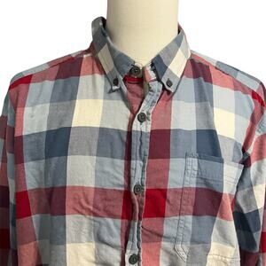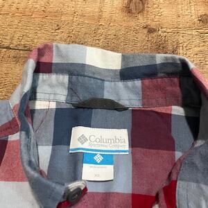 Columbia Men's Red Blue Plaid 100% Cotton Long Sleeve Button Down Sz XL